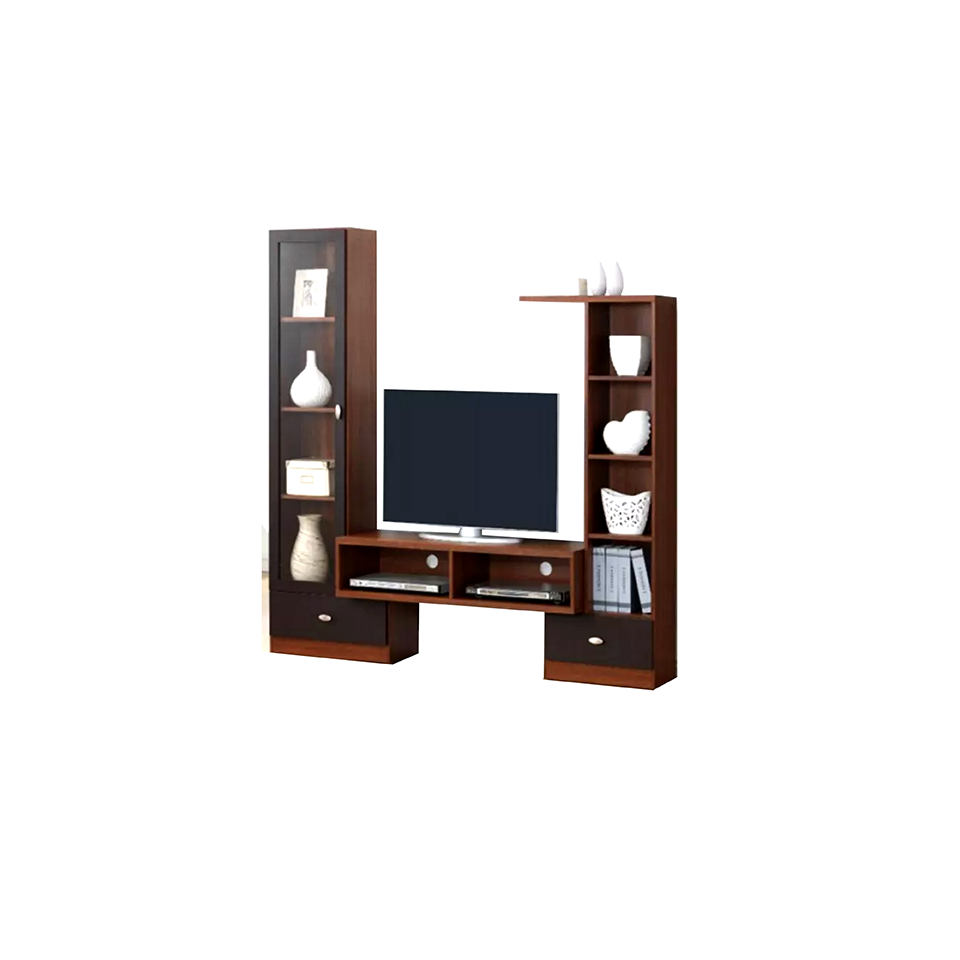 This entertainment center feature pair of bookshelf for your display collection, 2 shelf space for your electronic device and 2 drawers for other collection.