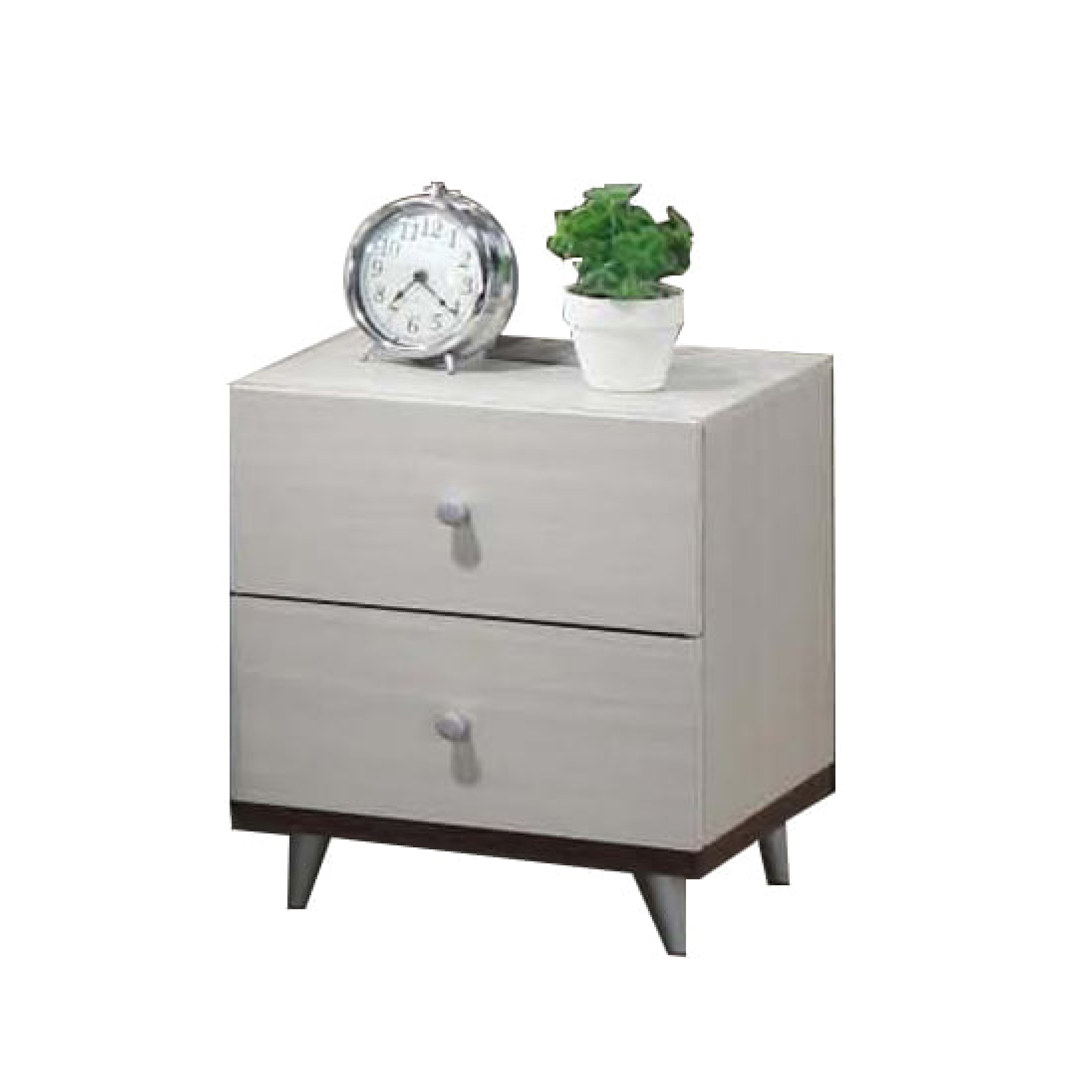 - Two drawers come with minimalists round silver knobs